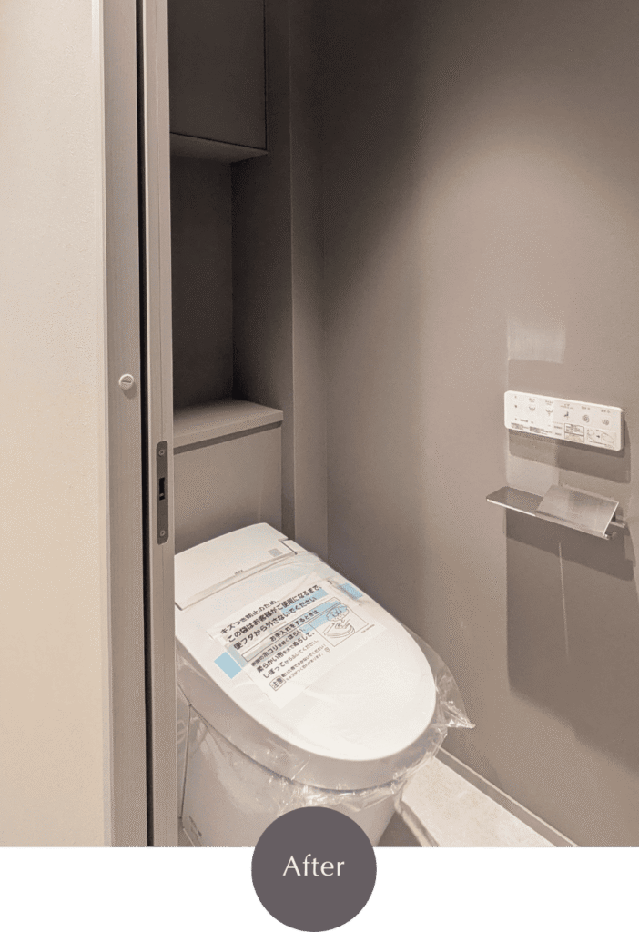 タンクレスのすっきりとしたフォルムに、グレアレスの照明が、まぶしさを抑えて、空間全体をやわらかく照らします。