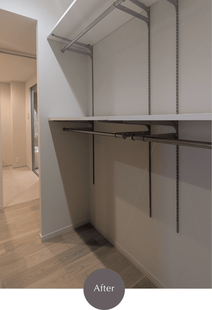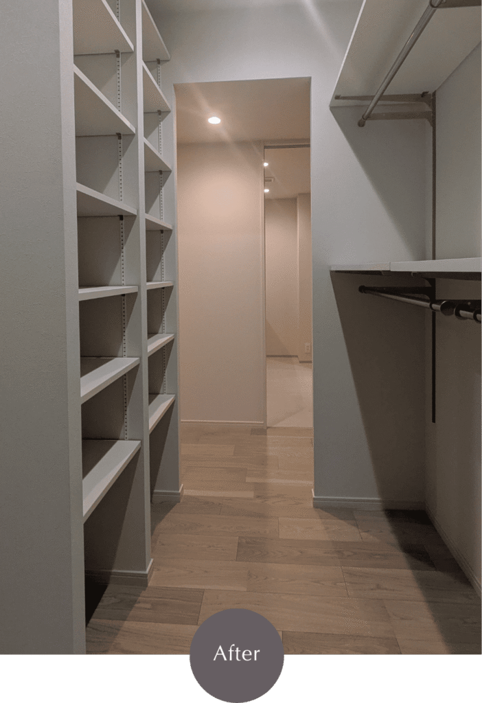 旧和室と洋室の間取りを見直し、ウォークスルーのファミリークローゼットを設けました。