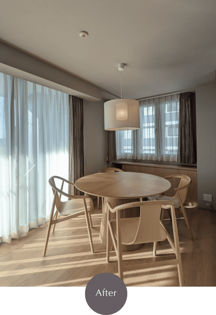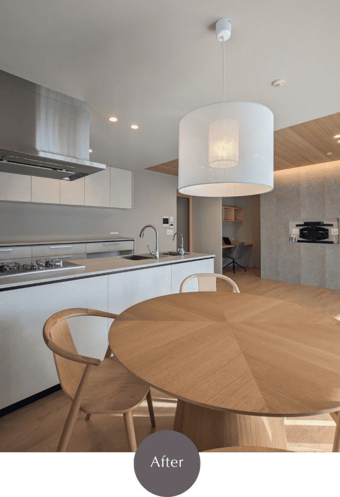 少し手狭だった空間も、丸テーブルを選ぶことで、ほどよい距離感が生まれました。