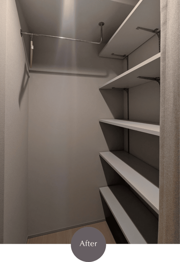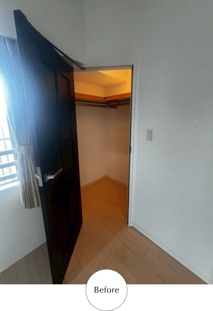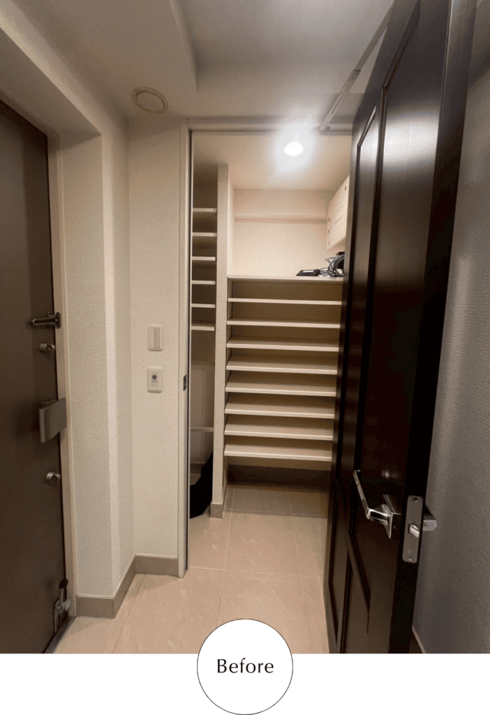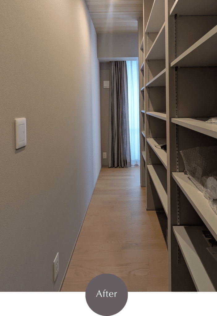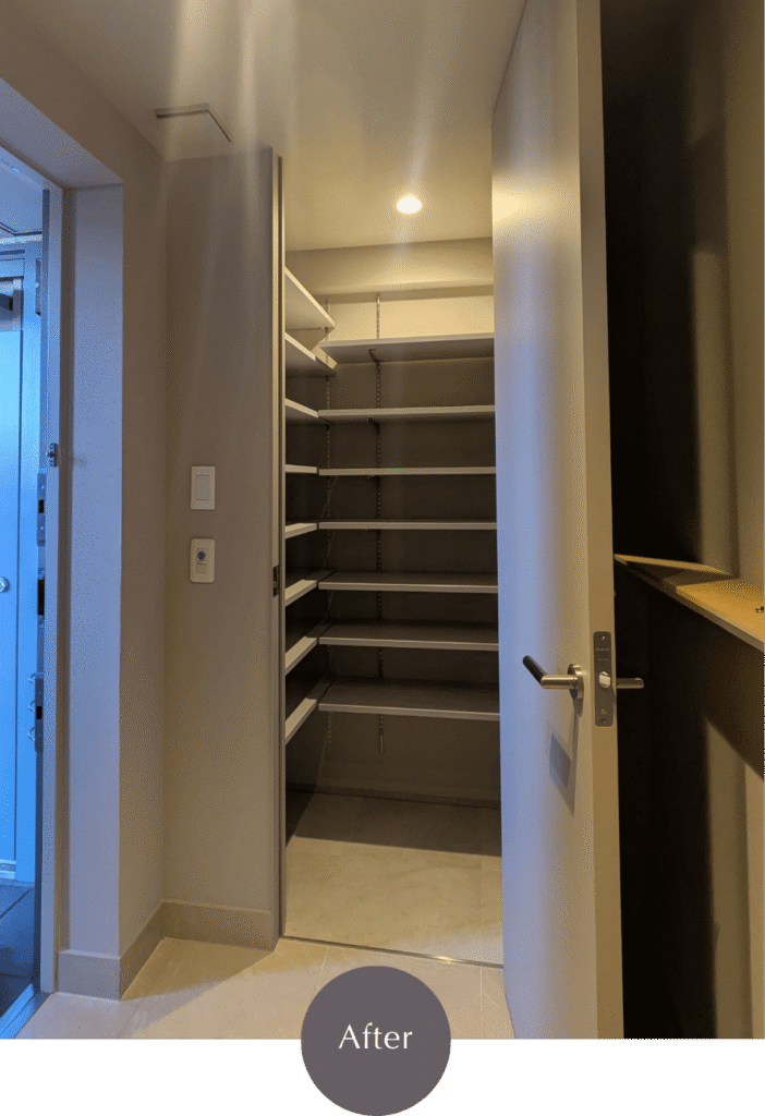 元は洋室側からアクセスするWICだった空間を、廊下側から利用できるストックルームに変更しました。