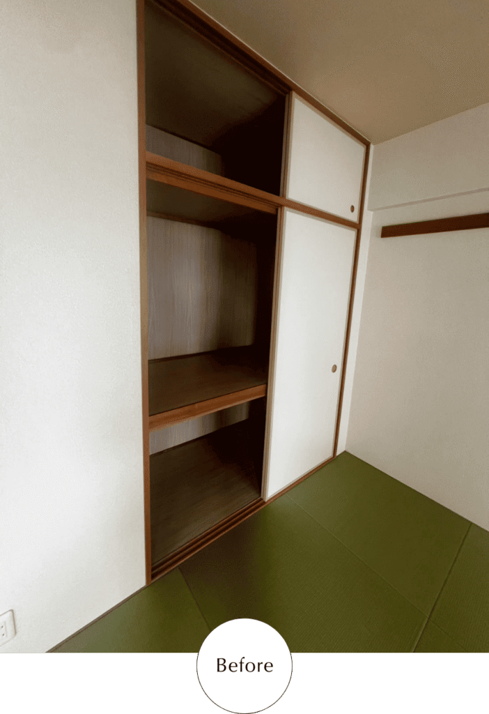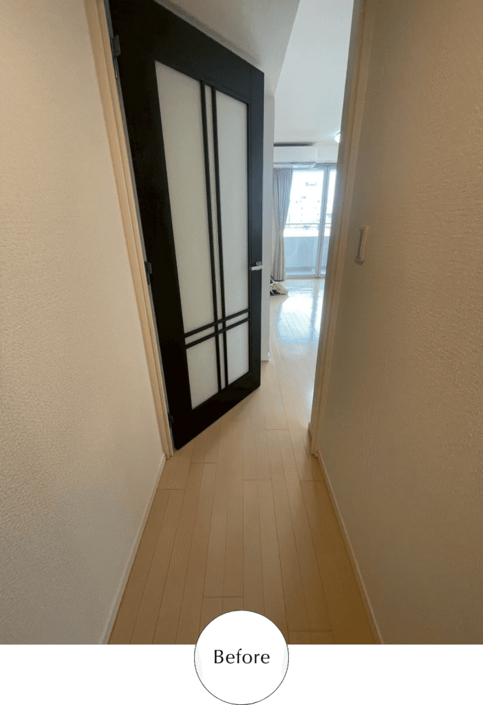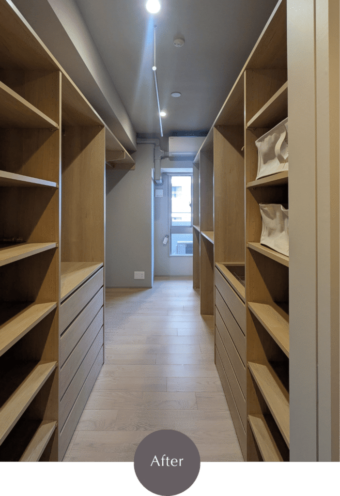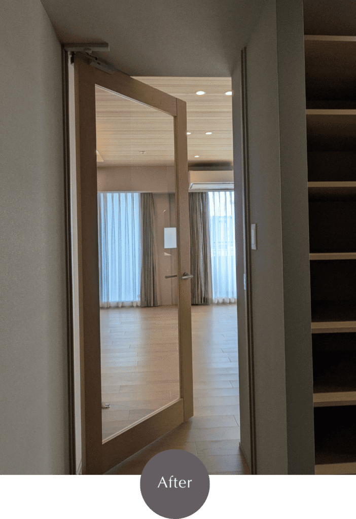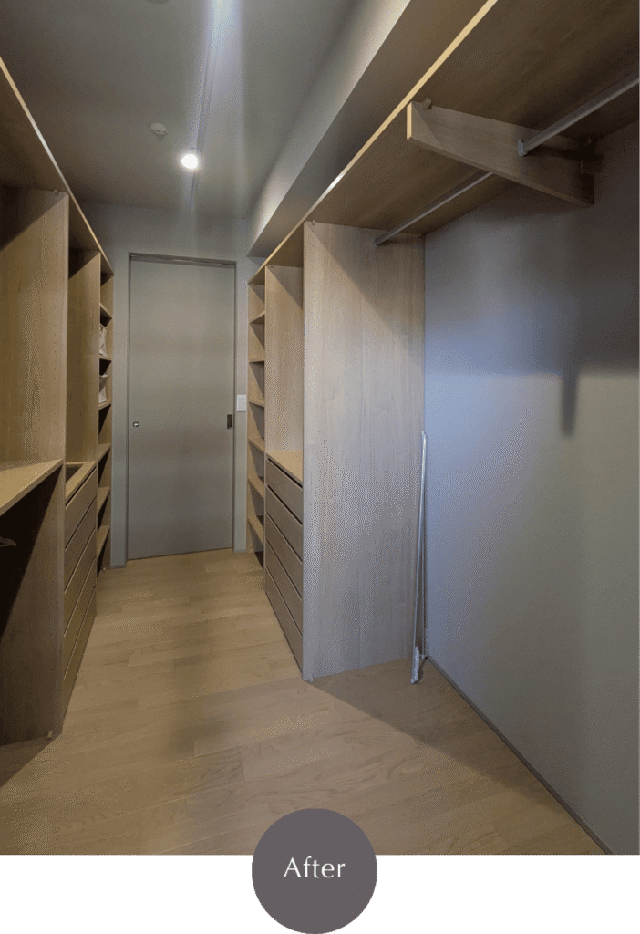 元は洋室側からアクセスするWICだった空間を、廊下側から利用できるストックルームに変更しました。