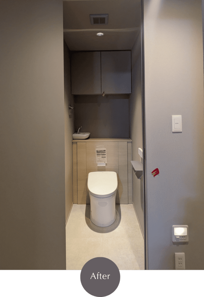 グレーを基調とした、落ち着いた雰囲気のトイレ空間。