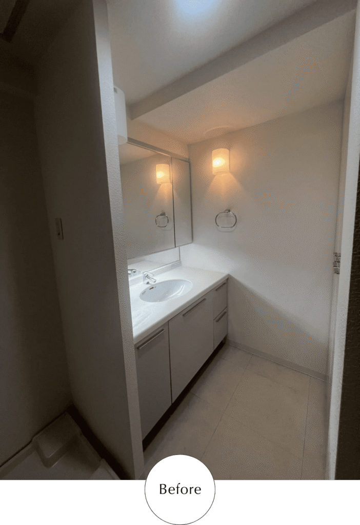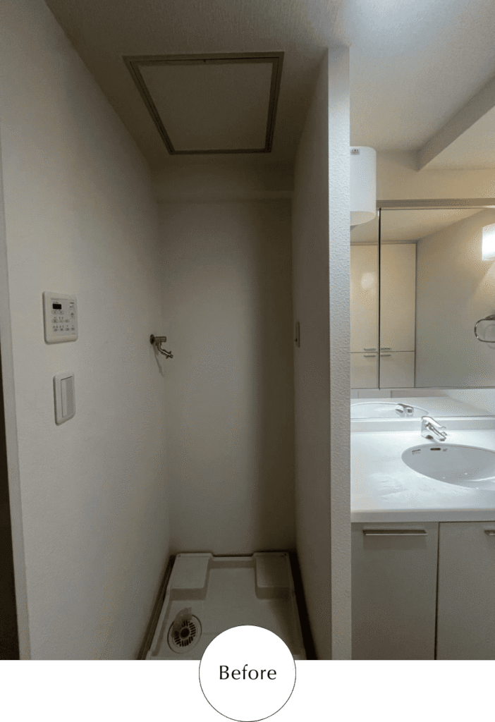 奥まった場所にあった洗面化粧台と、洗濯機置き場を入れ替えました。