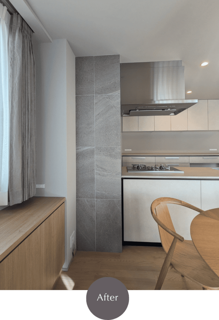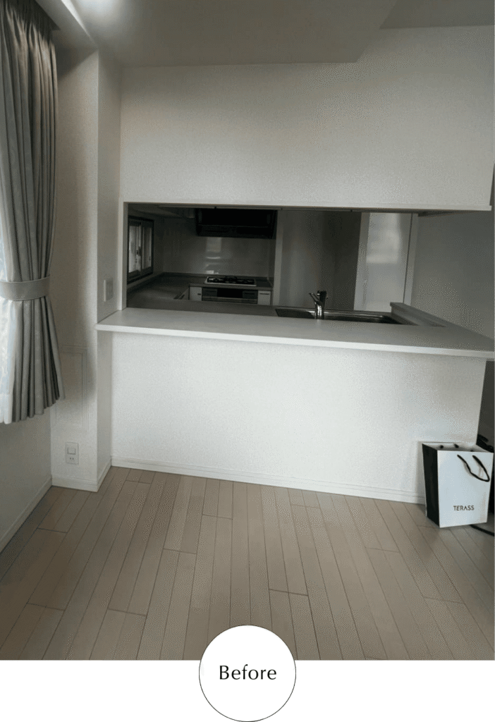 吊戸棚を撤去したことで、明るく広々とした印象になりました。