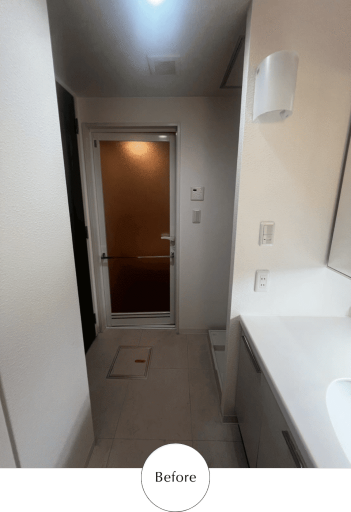 洗面化粧台が手前にあることで、廊下からのアクセスが良く、お風呂上がりにもさっと立ち寄れます。