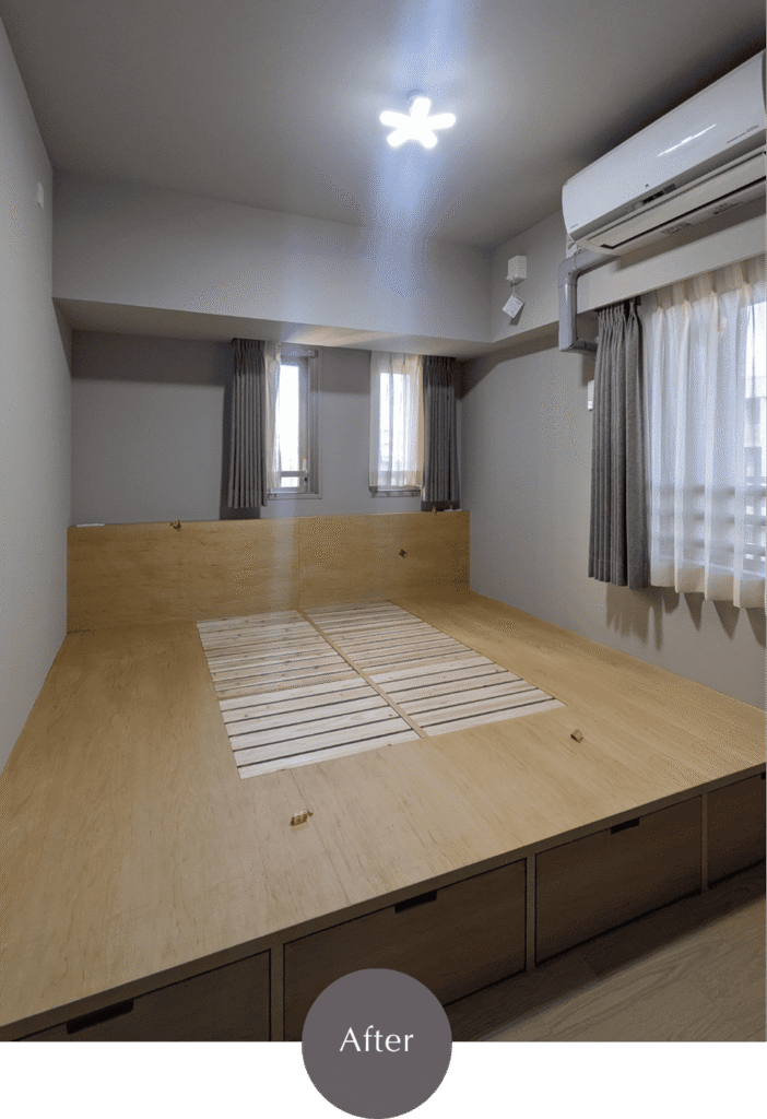 収納力を最大限に高めるため、造作ベッドを設計しました。