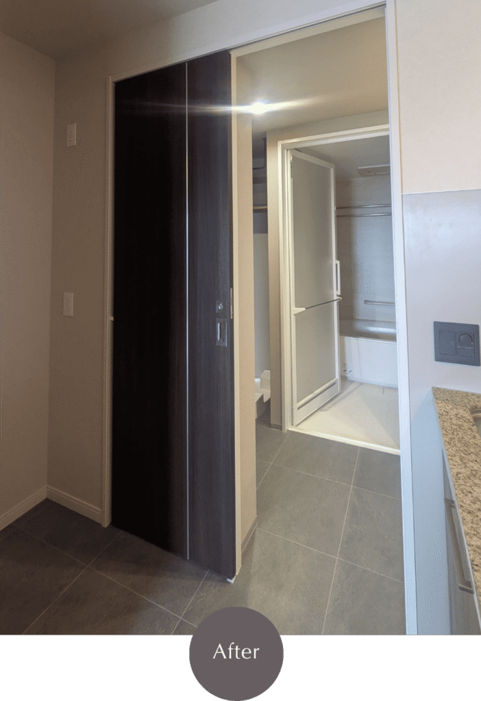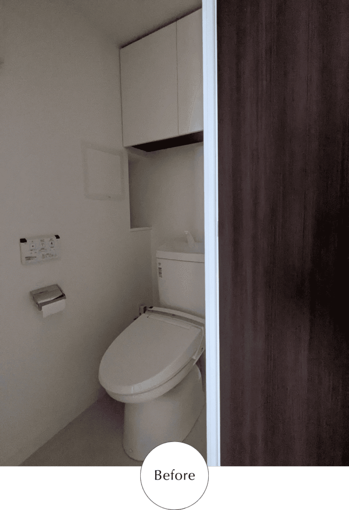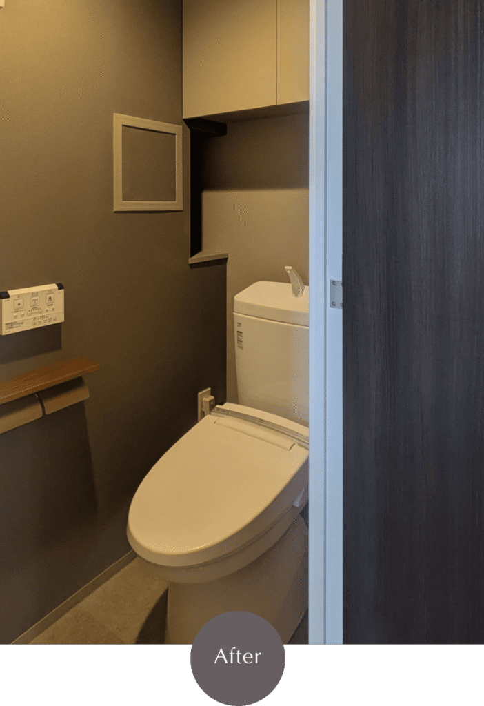 ペーパーホルダーや内装材を新しくするだけで、生活感を抑えた、すっきりとした印象の空間に仕上がりました。