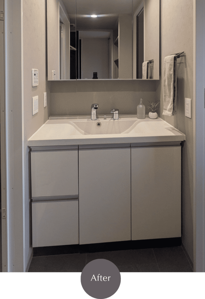 予算とのバランスを考え、洗面台は再利用することにしました。
