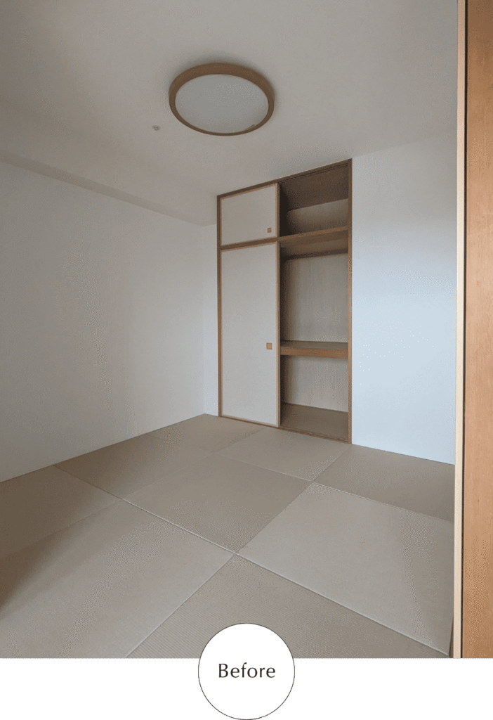 一般的な奥行きの押し入れを、和室の広さを調整することで、家族みんなで使えるファミリークローゼットに生まれ変わりました。